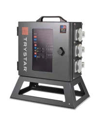 The Trystar Power Distribution Panel is built like a tank, from its stainless steel or aluminum enclosure to its heavy duty roll cage. All the components are top of the line. Over the years it has been tested by hard rental and industrial usage, and it has passed with flying colors.
